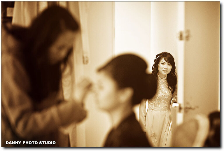 We had a great time with Mailinh & Tam and Ngoc, Mailinh’s bridemaide last year during their Engagement session. And now, it’s their big day. And this is the first traditional Vietnamese Wedding that we have covered. And it’s the longest coverage (11 hours )that we had so far for this year, very challenging. The wedding started with Tea ceremony in the early morning. The first Tea ceremony session was at Mailinh’s house. And we were so happy to work with Ann Ho, amazing makeup artist again. I couldn’t count how many times we have worked on same weddings, and every time Ann’s makeup is just gorgeous. We were able to see Mailinh in her beautiful traditional Vietnamese costume: