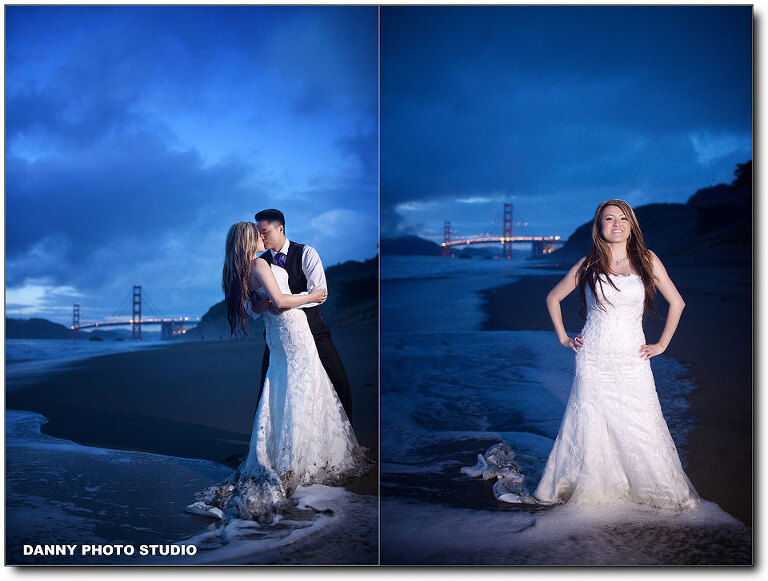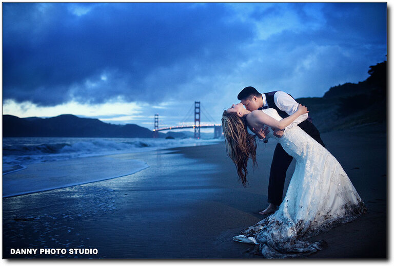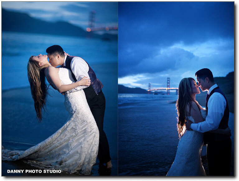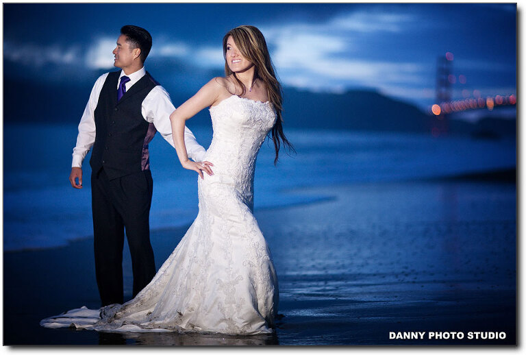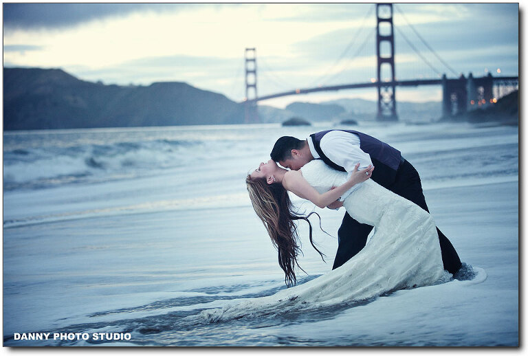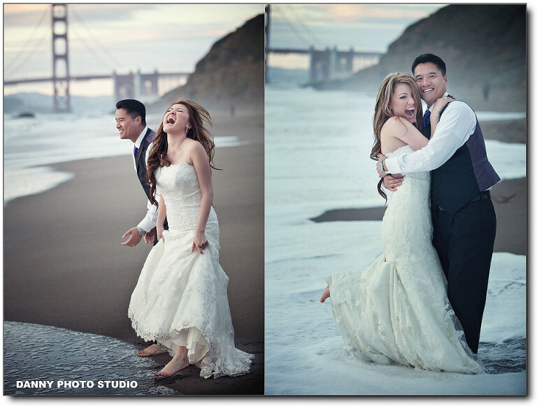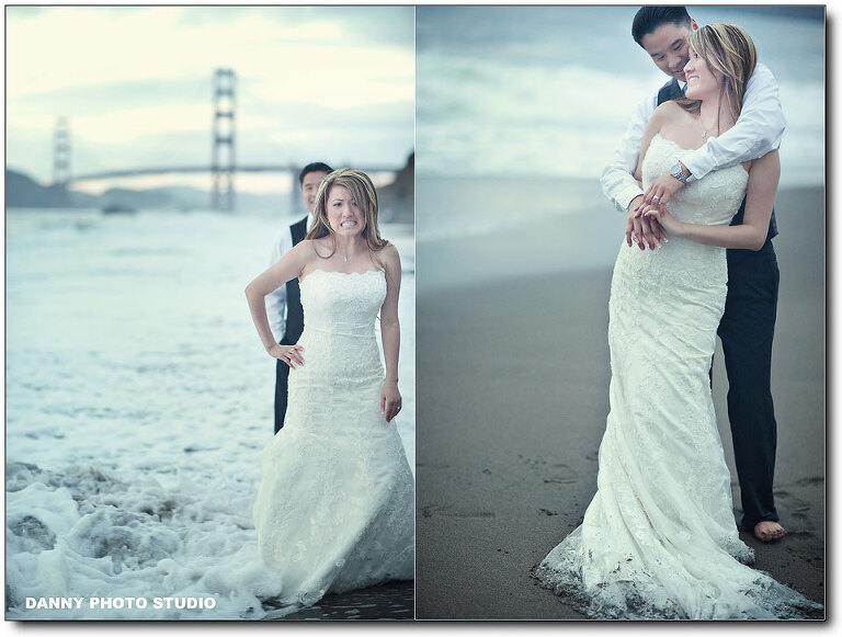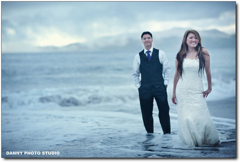 Almost every our customer will book an engagement session but very few of them will book a Trash-the-Dress. Last year we did a TTD session in Hawaii and we have been expecting for the next one, but it’s a long wait. That’s easily understandable, not many brides really want to trash her thousand dollar wedding dress. But Kit is special, she is so cute and awesome. We love Kit. This is our long waited Trash the Dress session for Kit and Jake. We covered their beautiful wedding back 2 month ago at the beautiful Palm Event Center. I will post the slideshow in the end. We had a great fun with Kit and Jake. It was very cold actually in the water, but after a while, when you get numbed, you just don’t feel it. Let’s take a look.