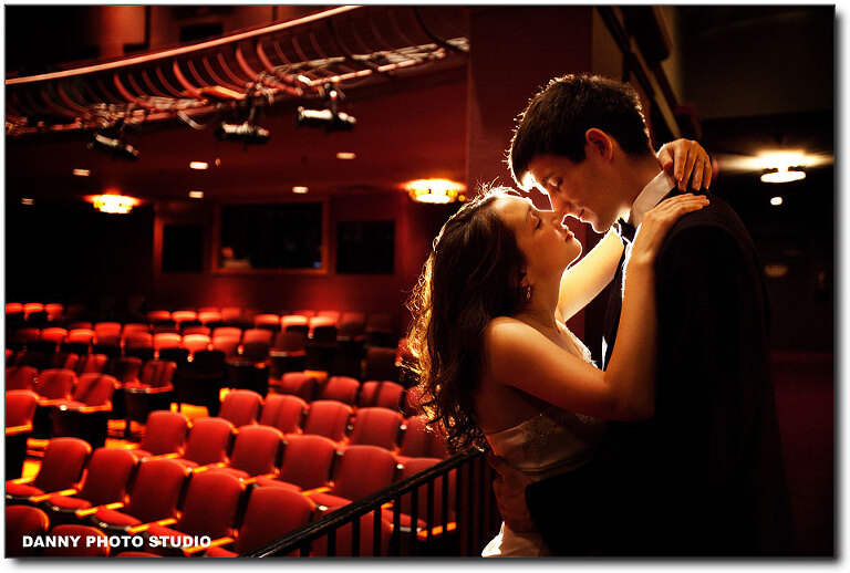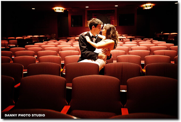 We are so excited about this special engagement photo session for Colleen & Travis in Montgomery theater. It’s our first time to have an engagement session in a theater, especially for such a beautiful couple. Colleen and Travis first met each other in a theater, as both of them are theater actor & actress. Then both of them have auditions together. So it will be very meaningful to have an Engagement photo session in the theater. More important, we want to thank Steve, the expert and master of lighting, to help us about the lighting. We can’t do this session without Steve. We only need to tell Steve what effect that we need, then Steve can make it happen. And with these 2 beautiful professional theater artist, the portrait session is so easy. And the whole session is full of love and romance. We really enjoyed this session.