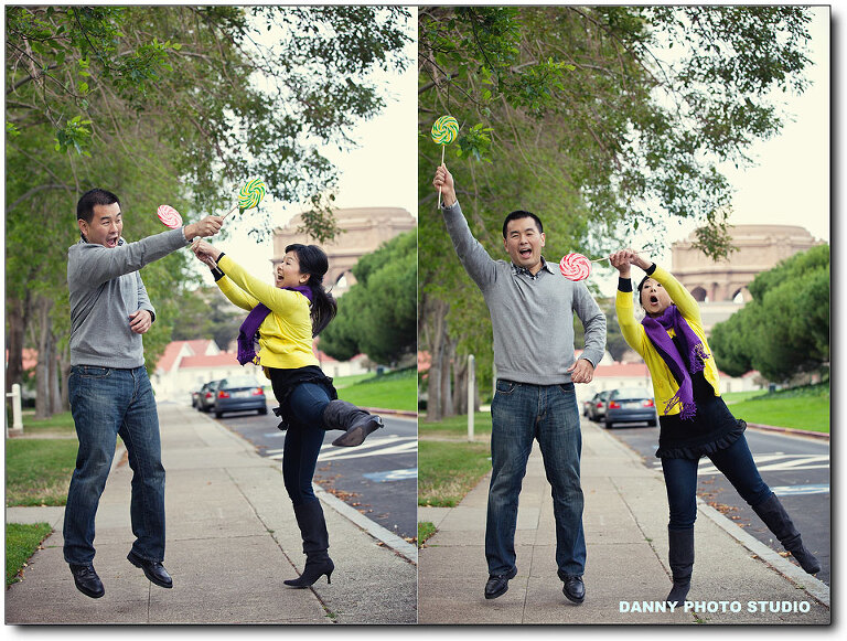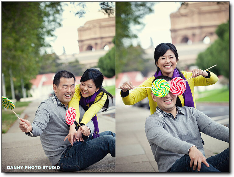 We had an interesting engagement session with Sandy & Ronald. Thanks Sandy for picking such a cold day, it’s windy & freezing in San Francisco. But they look so happy and gorgeous on photos. They brought 2 cute & big lollipops for the session and added great color for photos. We love the idea. Their wedding is coming soon in this October.