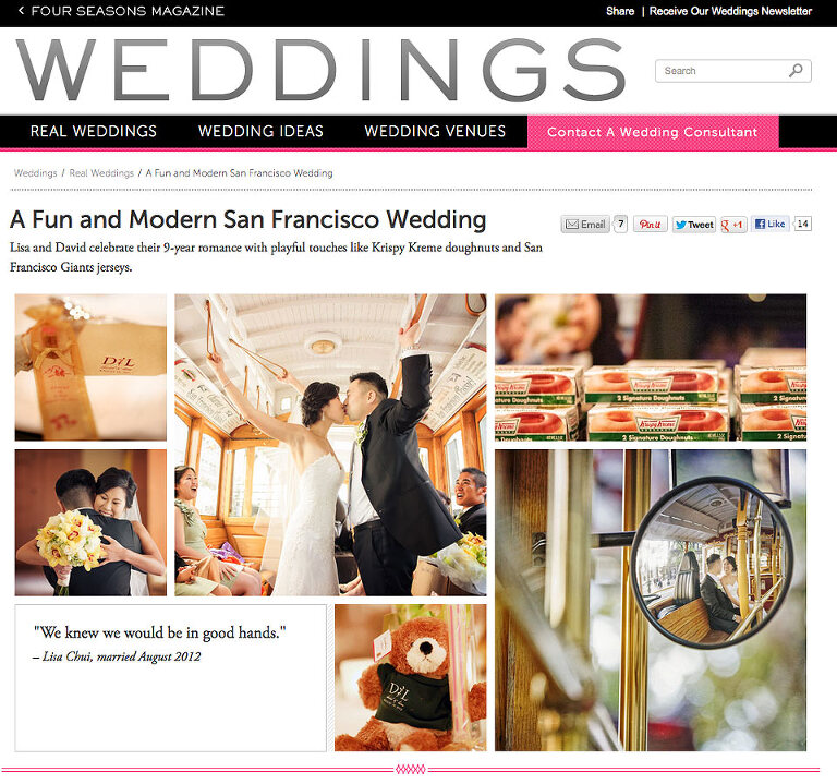 Very excited to see Lisa & David ‘s wedding featured on Four Seasons Magazine. Can’t wait to see the printed version coming out soon. Here is the online version:   https://magazine.fourseasons.com/weddings/real-weddings/a-fun-and-modern-san-francisco-wedding