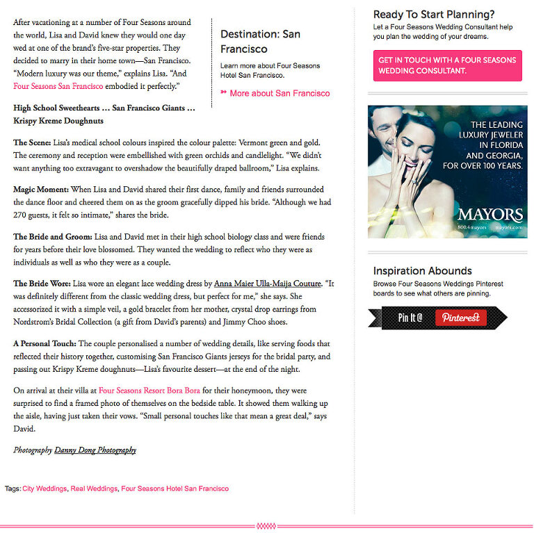 Magazine Feature: Lisa & David’s Wedding featured on Four Seasons Magazine