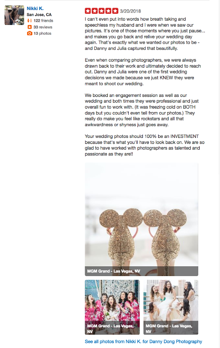 We had a blast covering this big and fun destination wedding for the gorgeous couple Nikki & Alvin. We have been looking forward to this destination wedding since the engagement photo session we did for them in San Francisco. Nikki & Alvin are so fun and lovely to work with. They want a non-traditional wedding, with all the friends gathering in Vegas, party together and celebrating with them. The whole day was full of fun. We toured almost the entire Vegas for pictures and fun. And the ceremony is at the secret garden of Caesars Palace. The food is fantastic too. We really enjoyed this amazing wedding. Thanks Nikki and Alvin for such a sweet and touching review and rave for us on Yelp. .jpg)