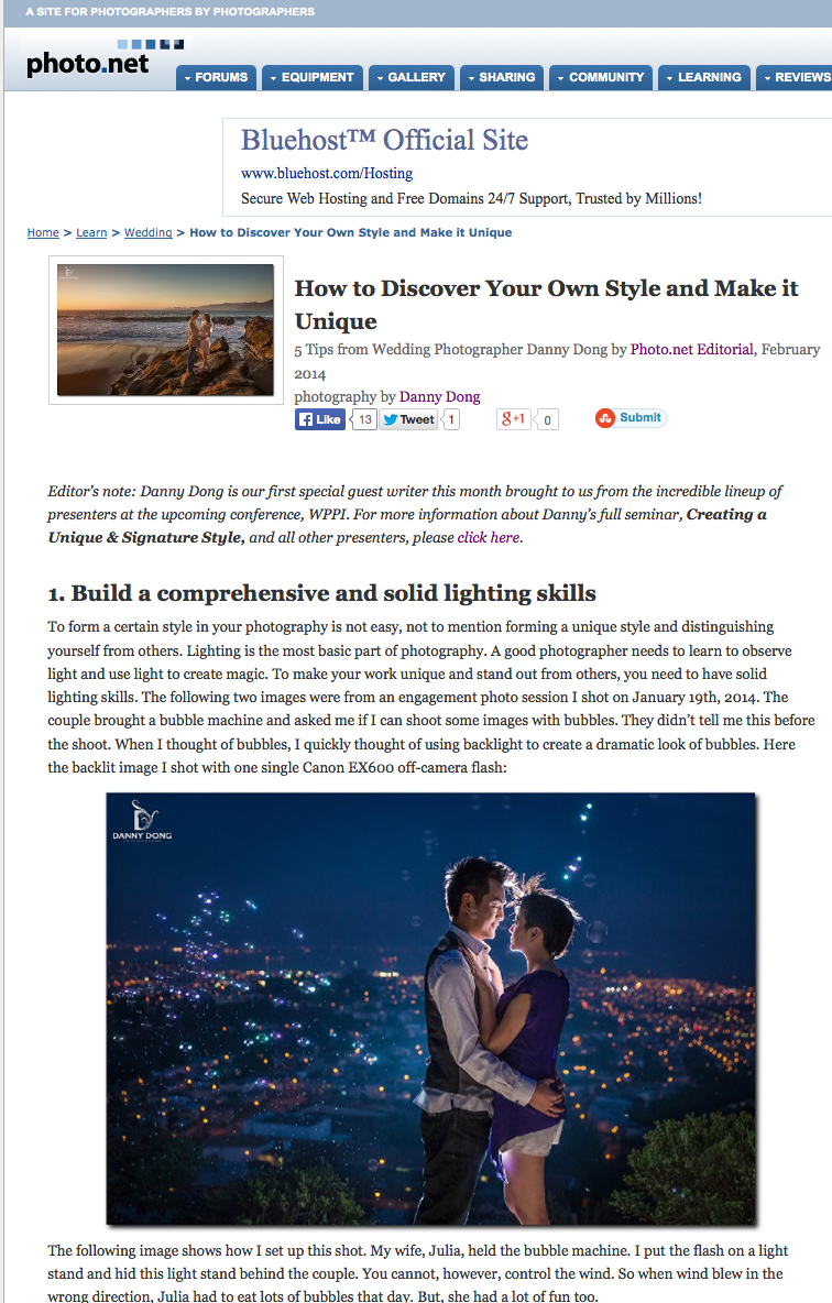 Very excited to be featured on Photo.net!!!! <How to Discover Your Own Style and Make it Unique> Here is the link to the article: http://photo.net/learn/wedding/5-tips-finding-your-style/ And I will talk more into details in my Master class at WPPI. Here is the registration link,Use promo code WPPISpeaker. For more info and to register, visit http://wppionline.com/. For...
